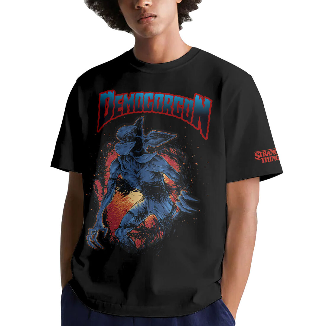 Sumérgete en el misterio de Stranger Things con esta playera para hombre de Demogorgon, el aterrador ser del Upside Down. Con un diseño impactante inspirado en la icónica serie, esta prenda de fit regular ofrece comodidad y estilo gracias a su confección en materiales suaves y transpirables. Perfecta para los verdaderos fans, es ideal para un look casual que combina con jeans, joggers o shorts. ¡Lleva el espíritu de Hawkins a tu outfit y enfrenta lo desconocido con estilo!